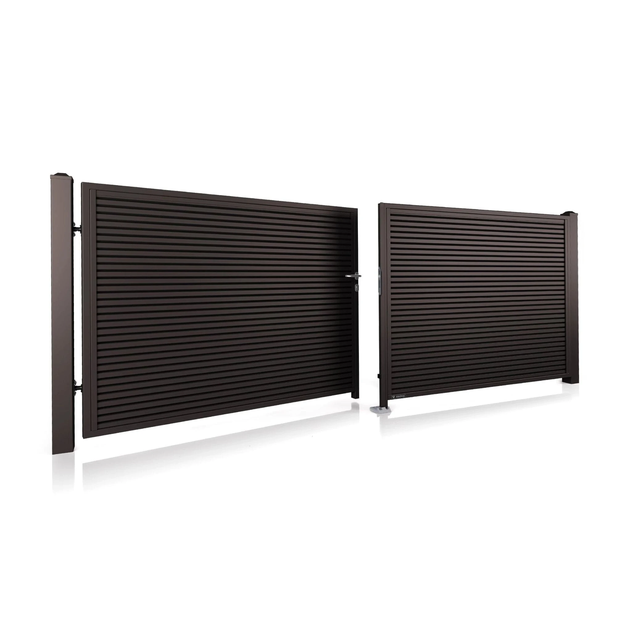 Wybierz bramę skrzydłową z kolekcji Home Inclusive, która łączy designem i kolorem ogrodzenie z bramą garażową, oknami i drzwiami. To najbardziej klasyczne rozwiązanie dla posesji.