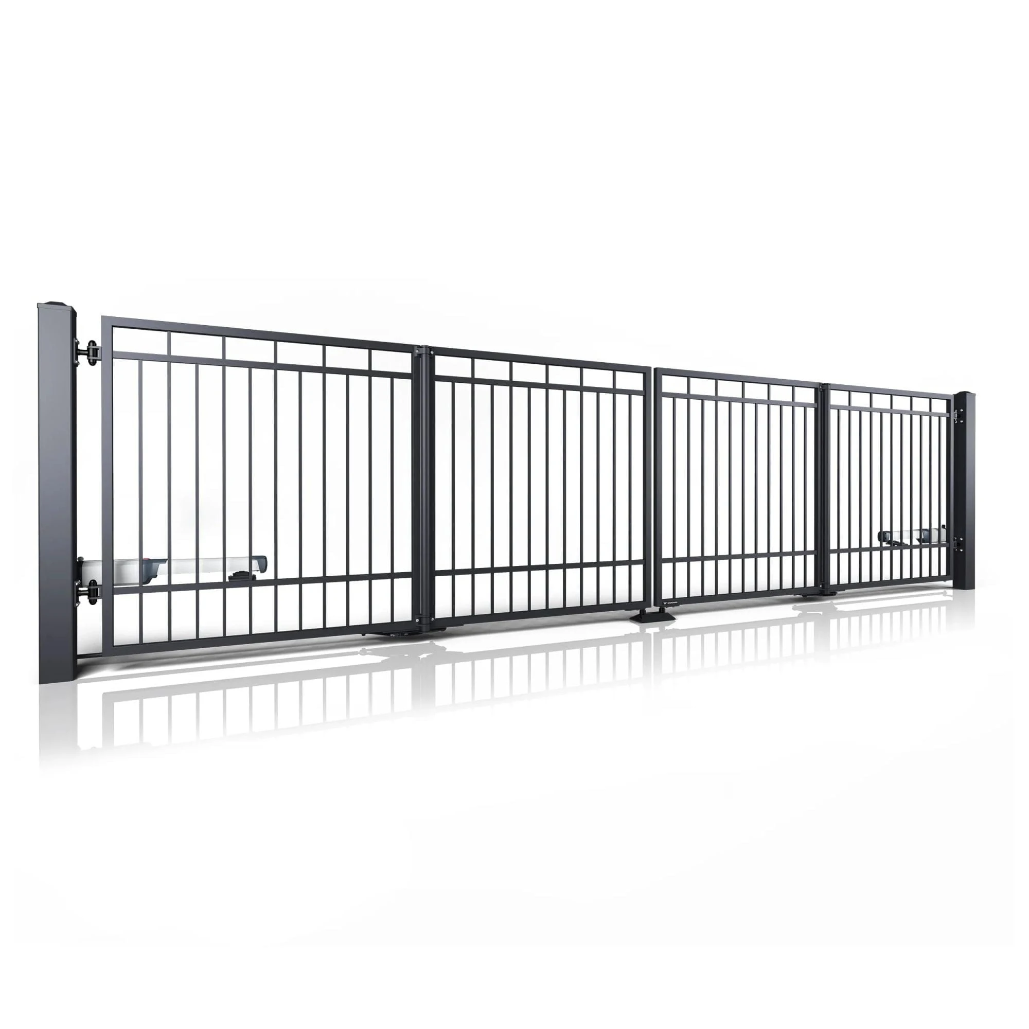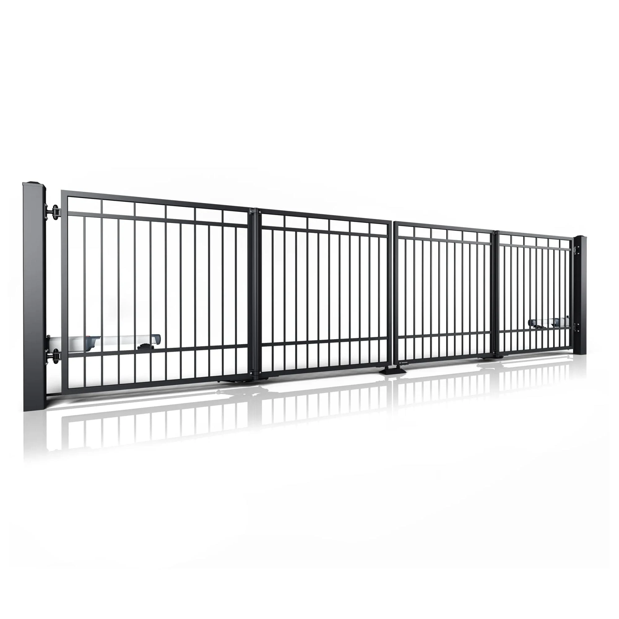 - Szybkość działania – Otwiera się niemal dwukrotnie szybciej niż tradycyjna brama skrzydłowa.