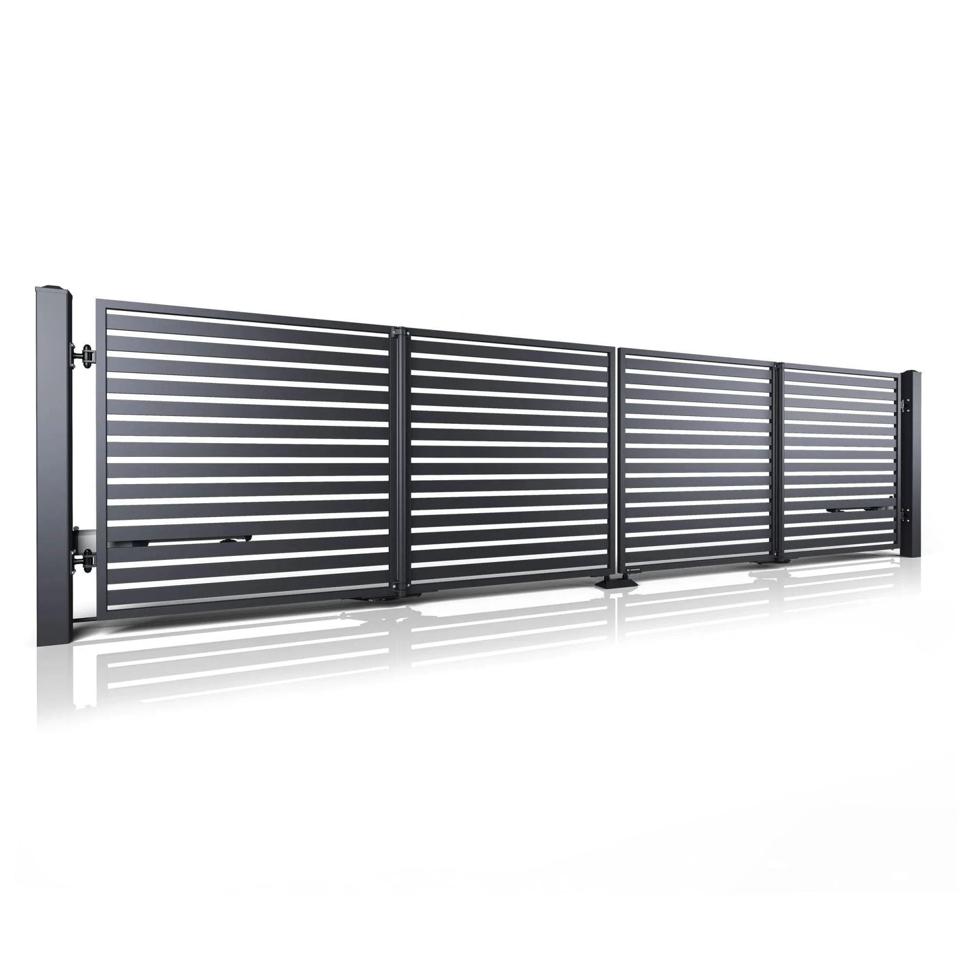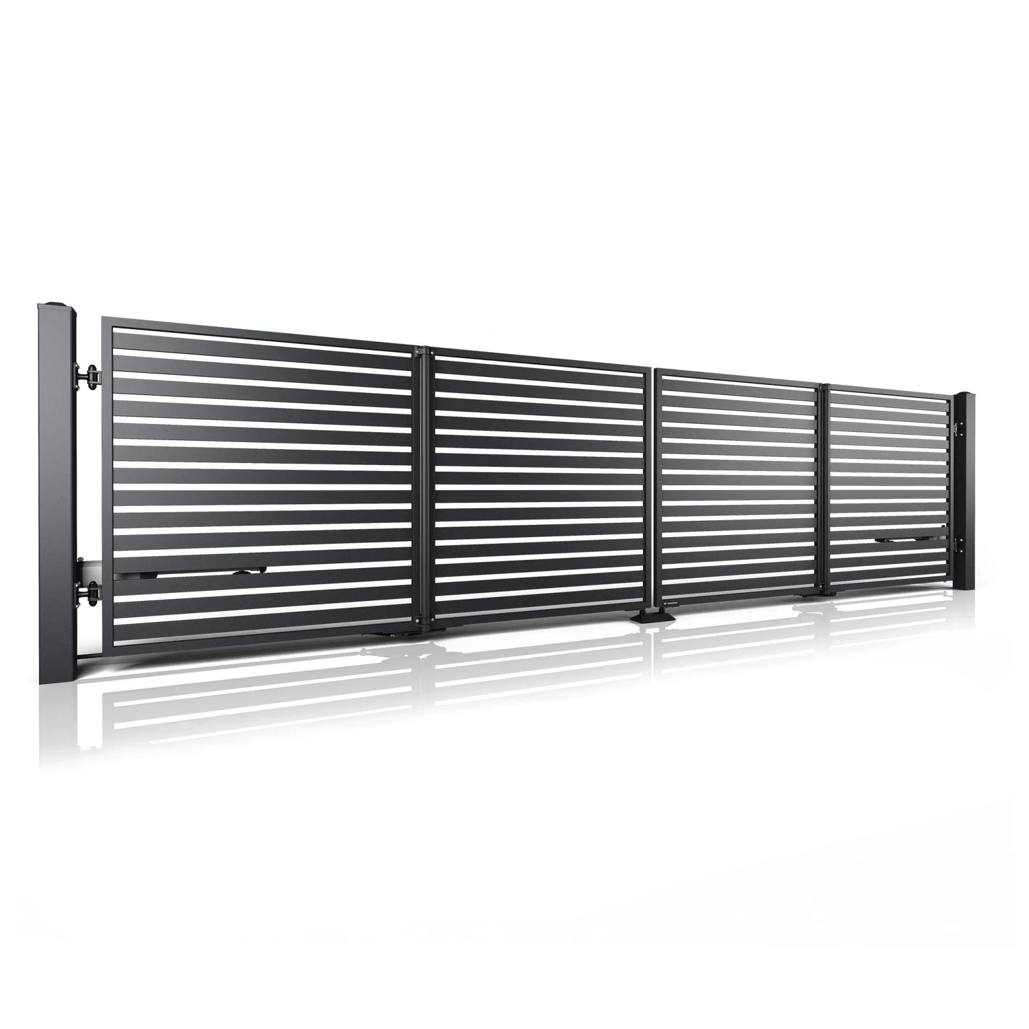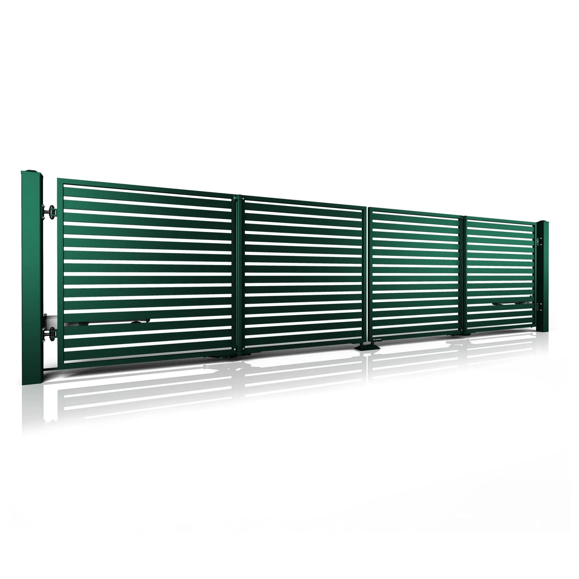- Szybkie otwieranie – Otwiera się niemal dwukrotnie szybciej niż tradycyjna brama skrzydłowa.