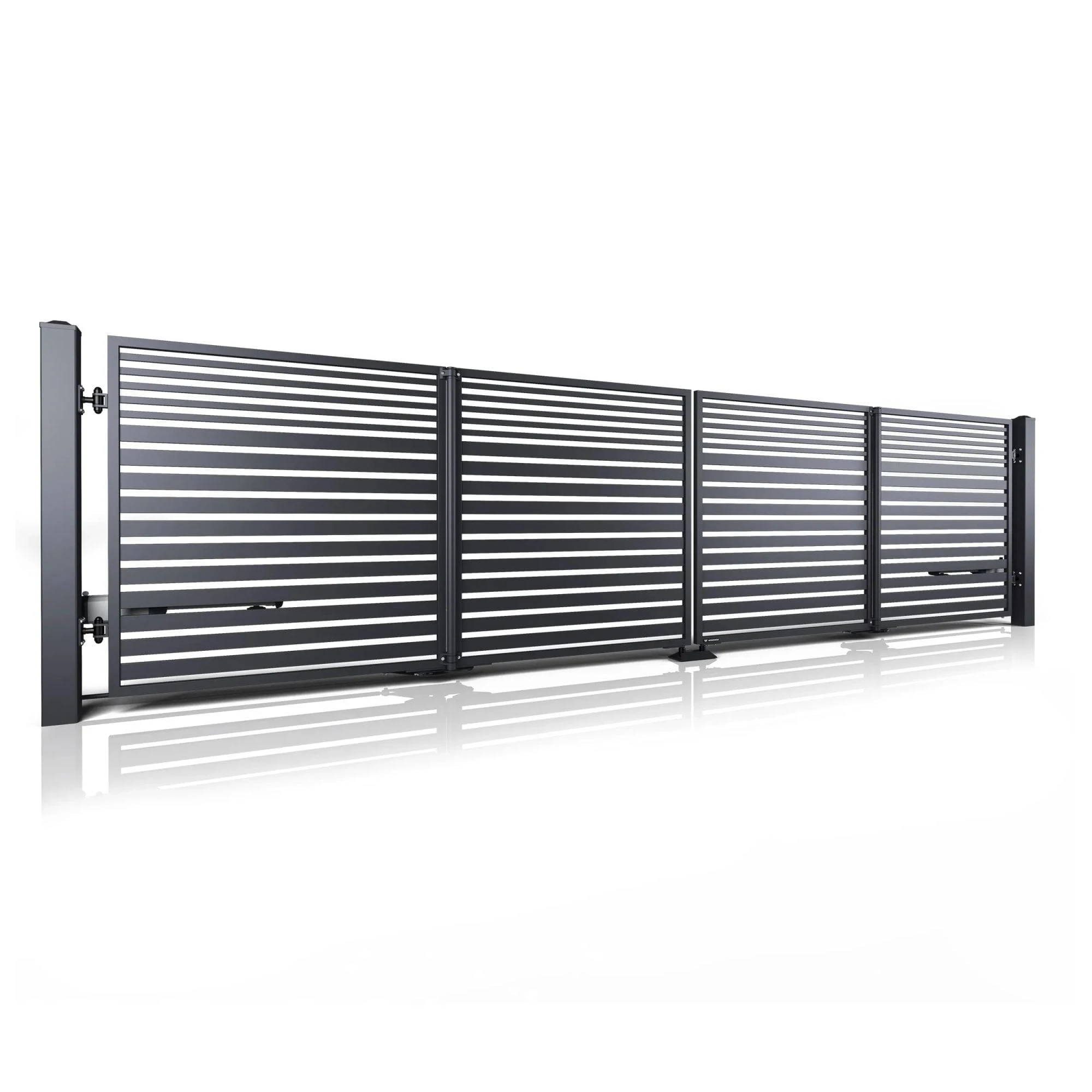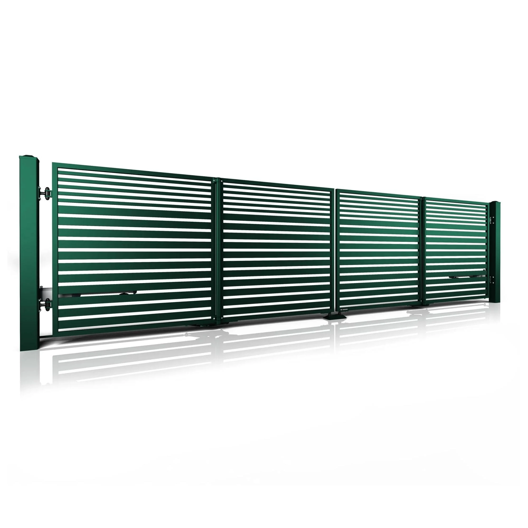 - Szybkie otwieranie – Otwiera się niemal dwukrotnie szybciej niż tradycyjna brama skrzydłowa.
