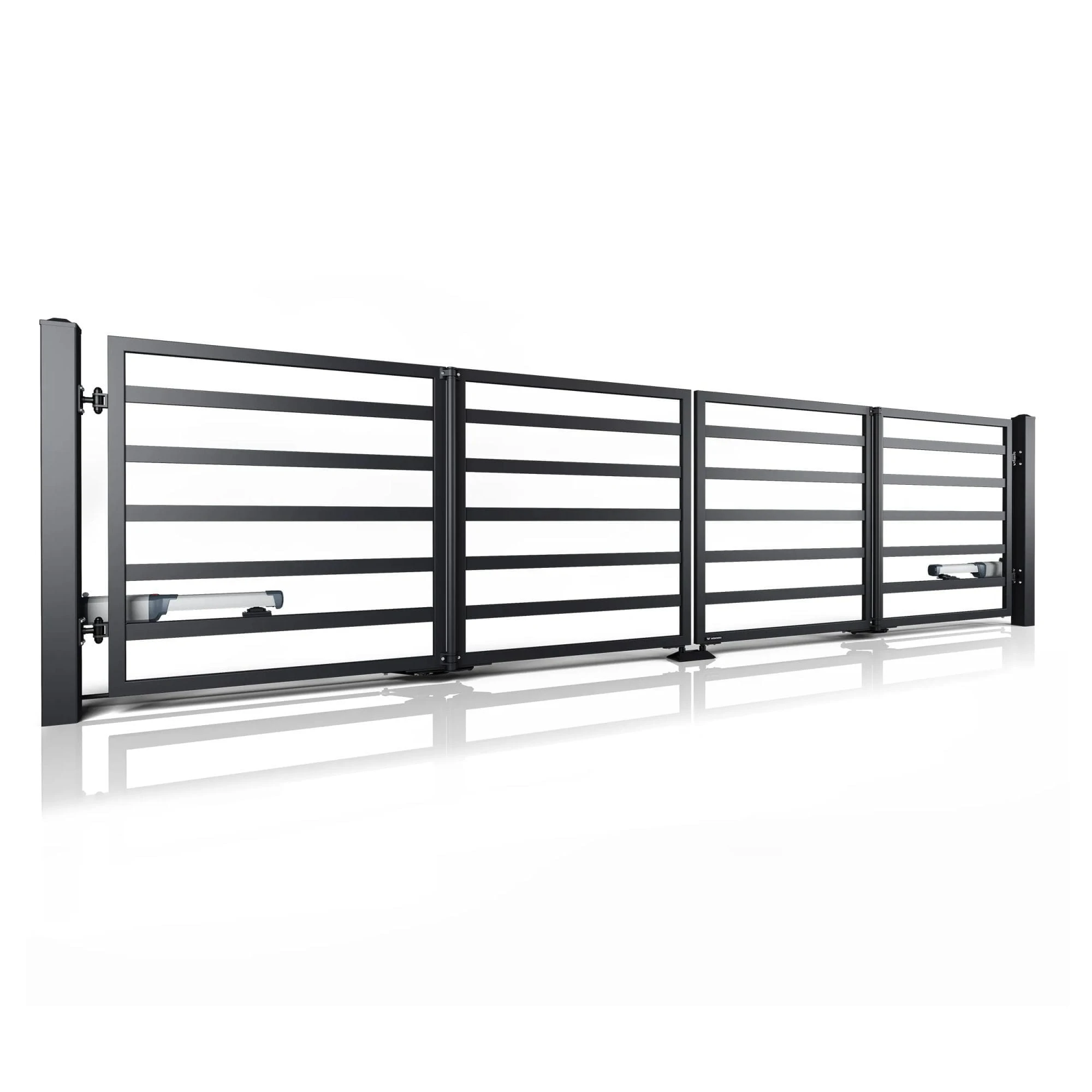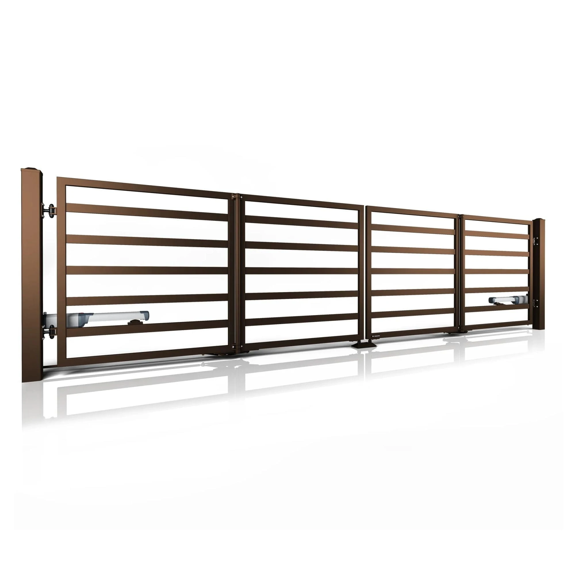 - Szybkie otwieranie – Konstrukcja bramy pozwala na otwieranie jej niemal dwukrotnie szybciej niż tradycyjnej bramy skrzydłowej.