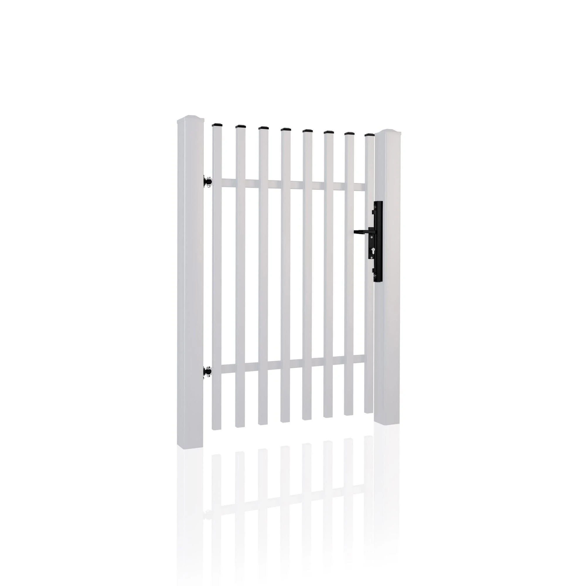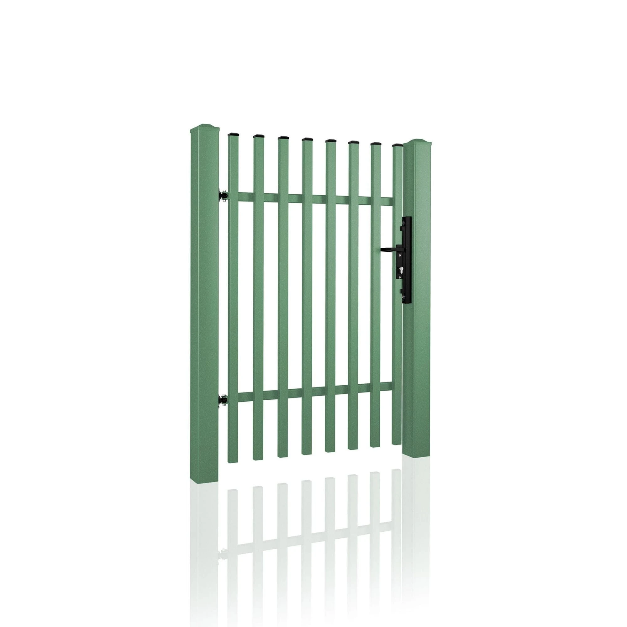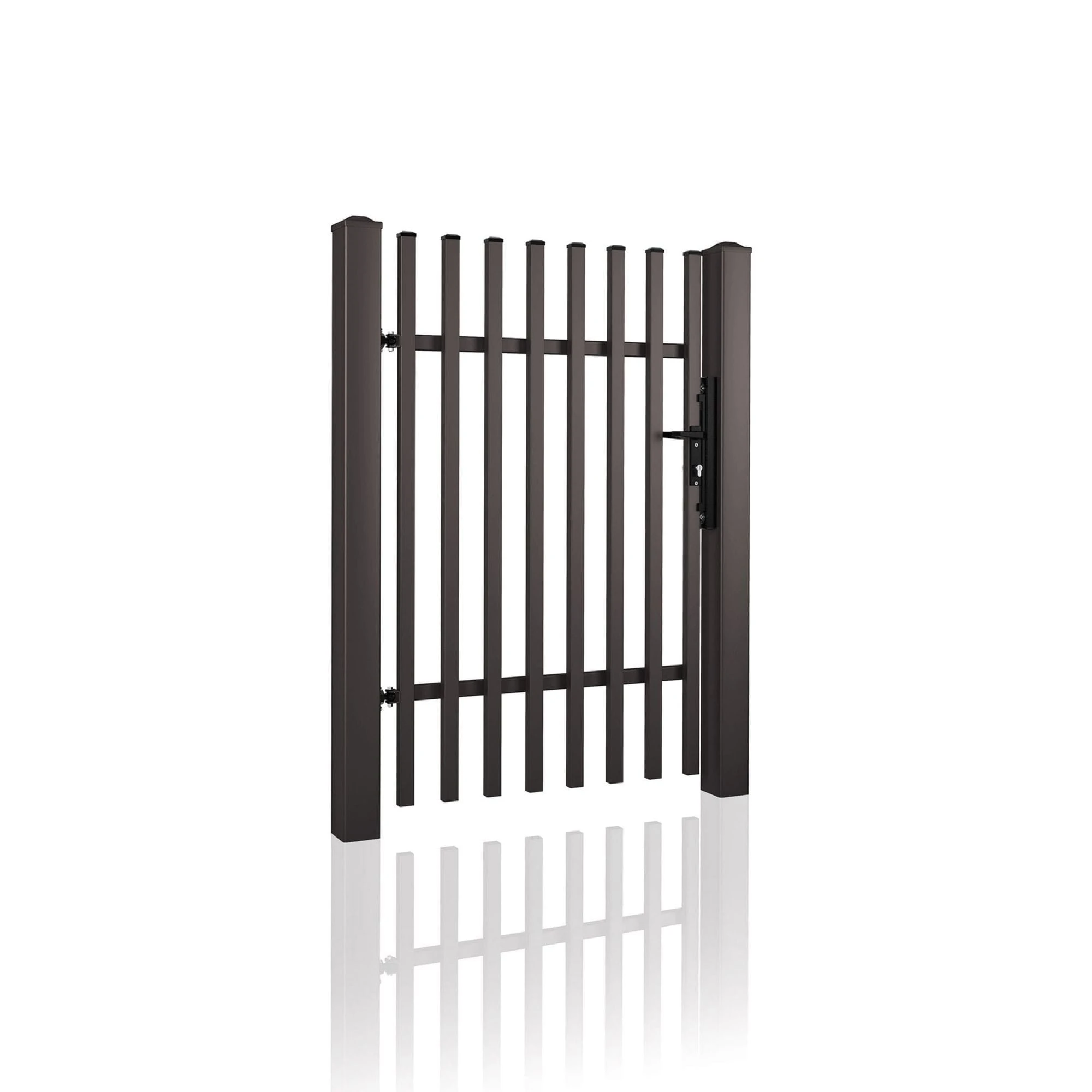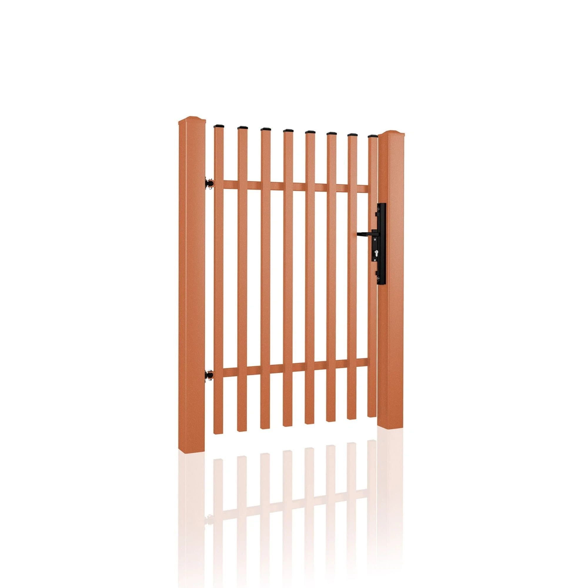 - Stalowe słupy systemowe WIŚNIOWSKI – Gwarantują stabilny i bezpieczny montaż furtki.