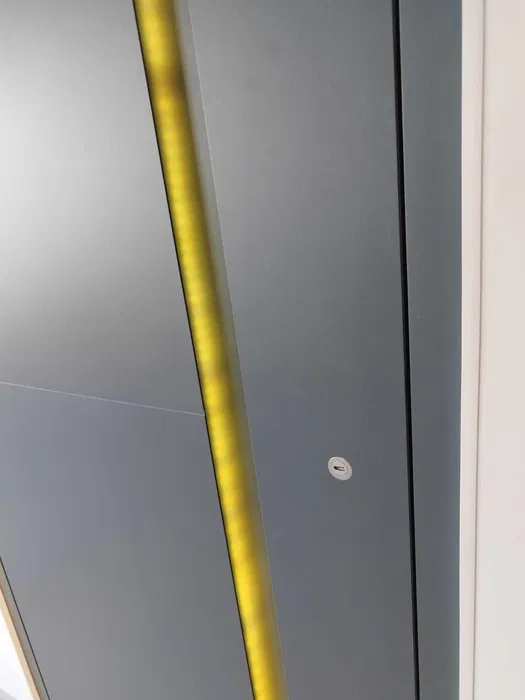 Pochwyt wpuszczany przez całą wysokość skrzydła z podświetleniem LED i przyciskiem zwalniającym napięcie